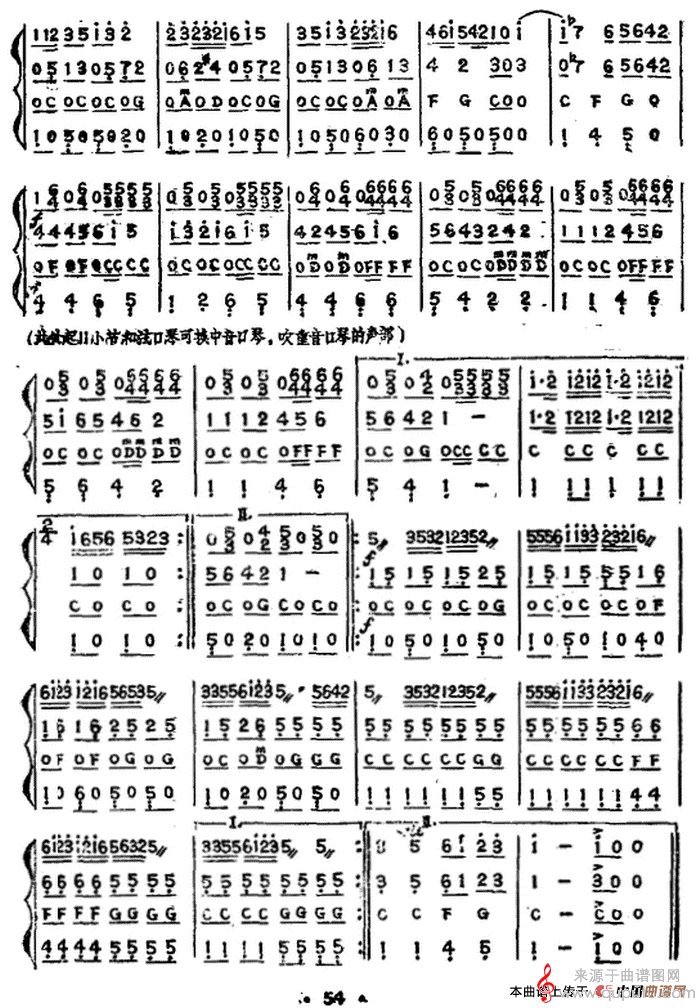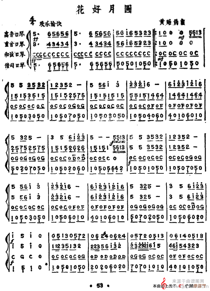花好月圆(口琴曲二重奏四重奏简谱乐谱)