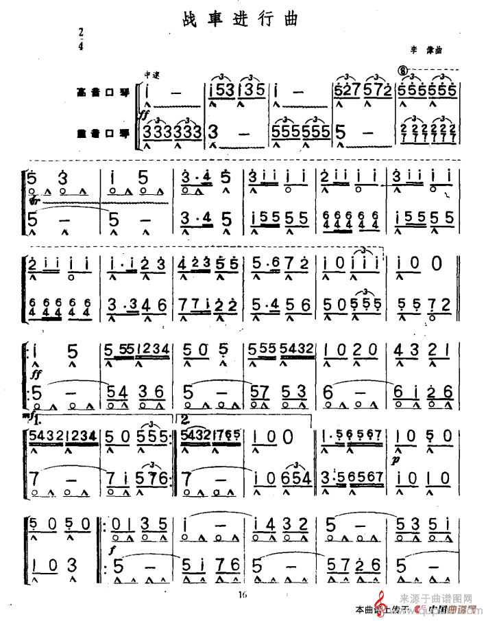曲谱图网为您提供战车进行曲(二重奏口琴曲谱)找谱子,就上曲谱图网。