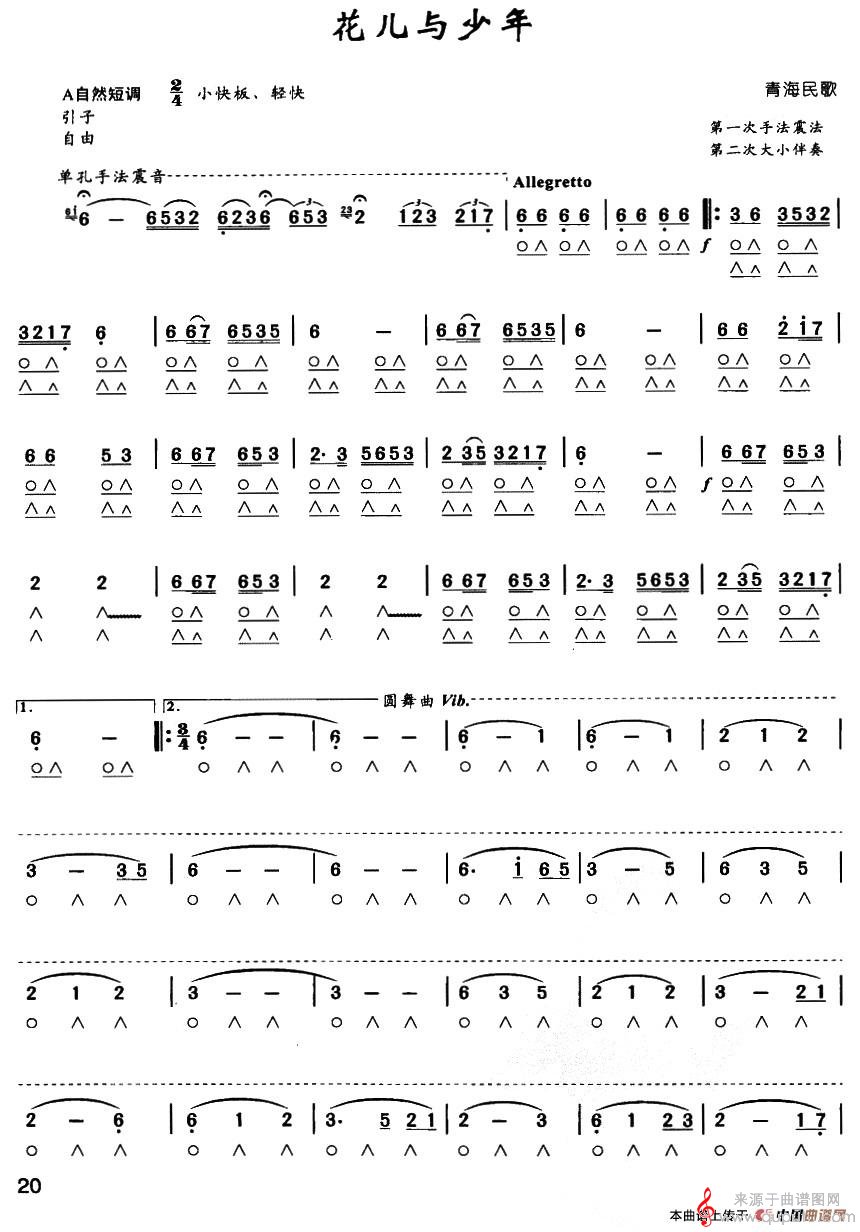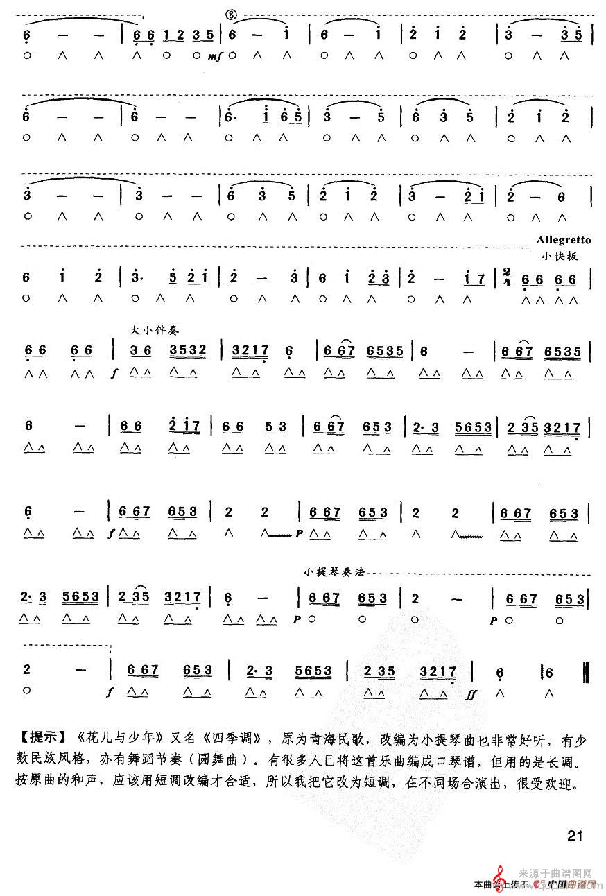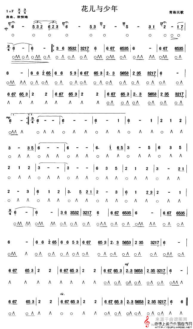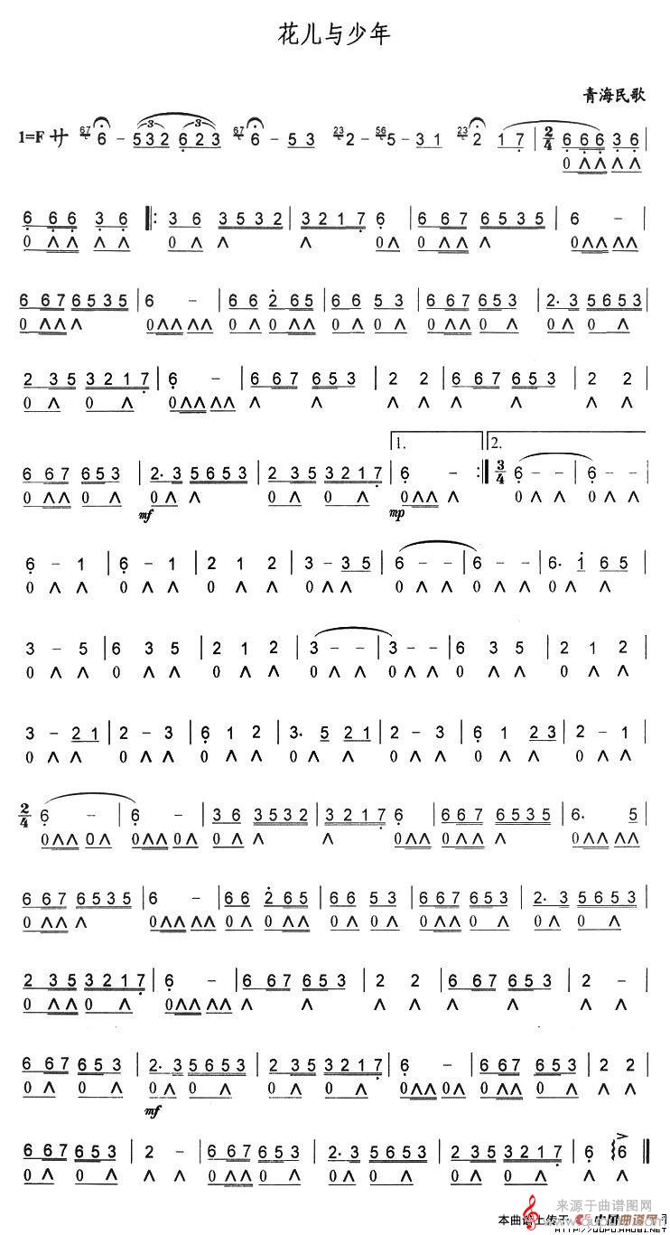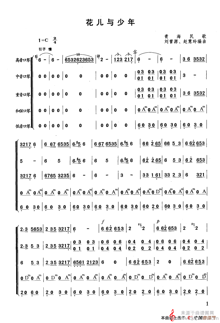 曲谱图网为您提供花儿与少年(青海民歌口琴曲演奏简谱合奏)找谱子,就上曲谱图网。