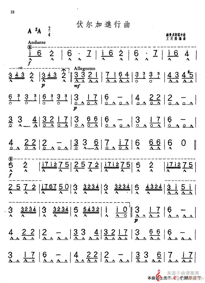曲谱图网为您提供伏尔加进行曲(口琴曲简谱王庆隆编曲版)找谱子,就上曲谱图网。