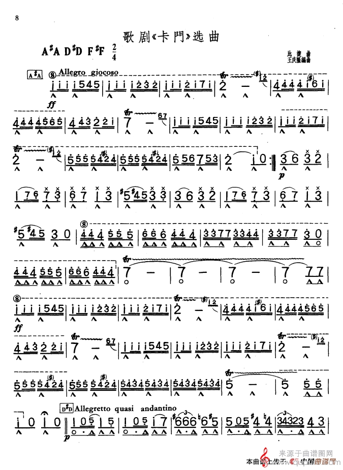 曲谱图网为您提供卡门(歌曲卡门选曲口琴独奏演奏简谱)找谱子,就上曲谱图网。
