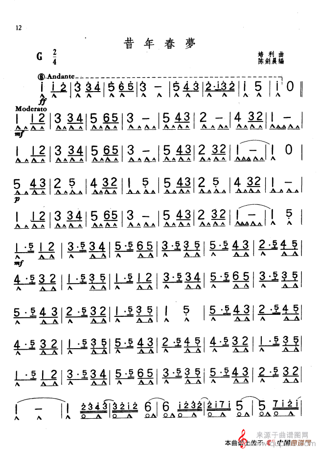 曲谱图网为您提供昔年春梦(昔年春梦口琴曲谱)找谱子,就上曲谱图网。