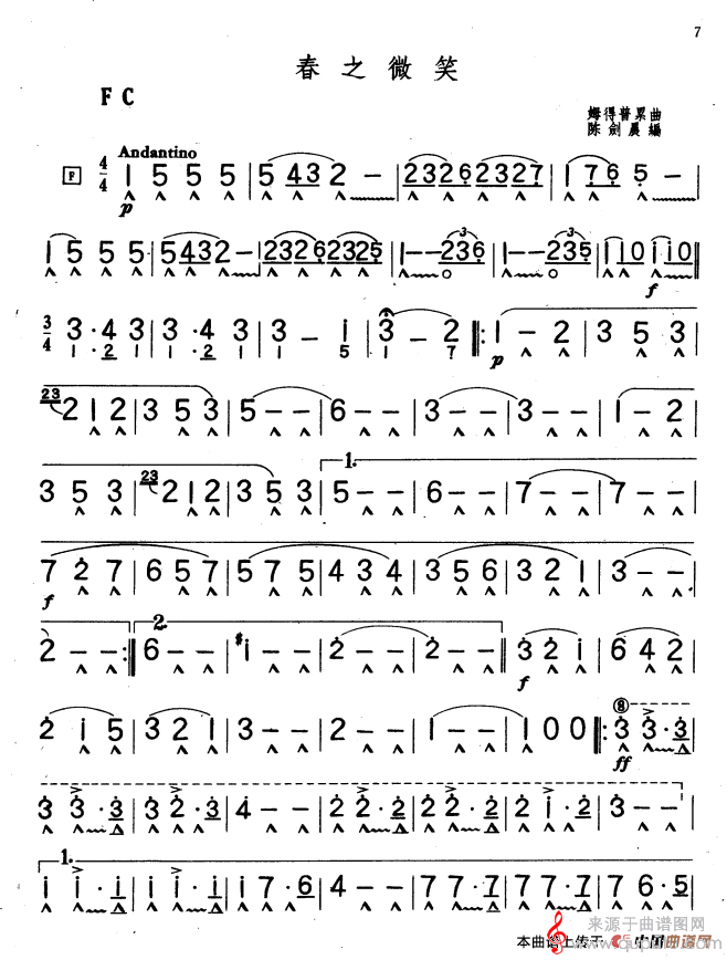 曲谱图网为您提供春之微笑(春之微笑口琴曲简谱)找谱子,就上曲谱图网。