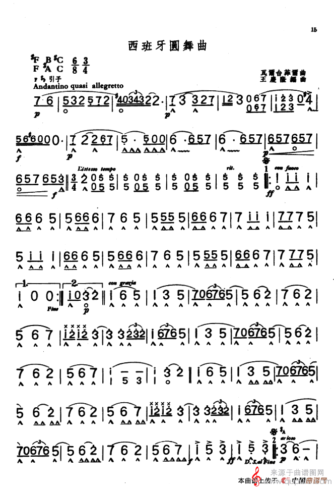 曲谱图网为您提供西班牙圆舞曲(西班牙圆舞曲口琴曲简谱)找谱子,就上曲谱图网。