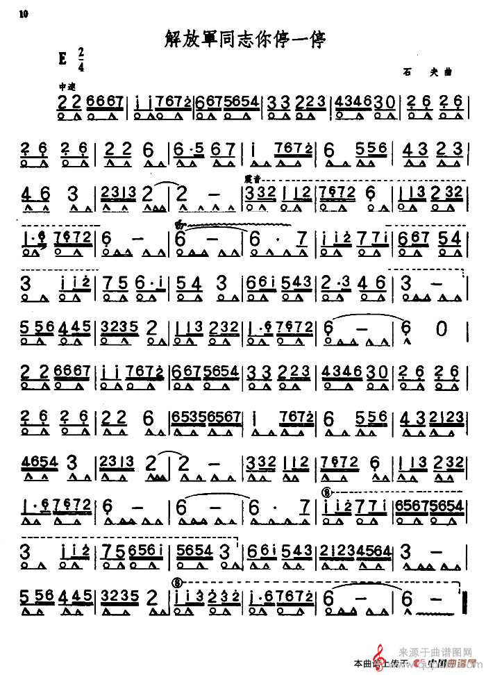 曲谱图网为您提供解放军同志你停一停(口琴曲简谱)找谱子,就上曲谱图网。