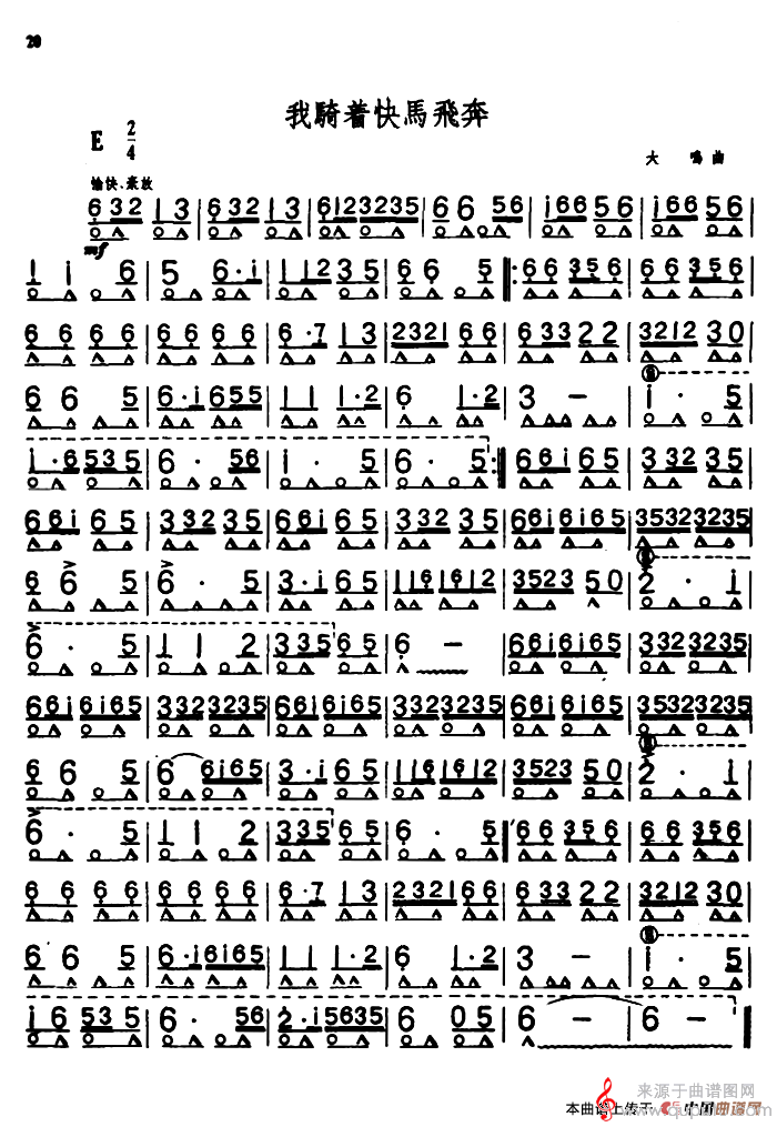 曲谱图网为您提供我骑着快马飞奔(口琴曲伴奏简谱)找谱子,就上曲谱图网。