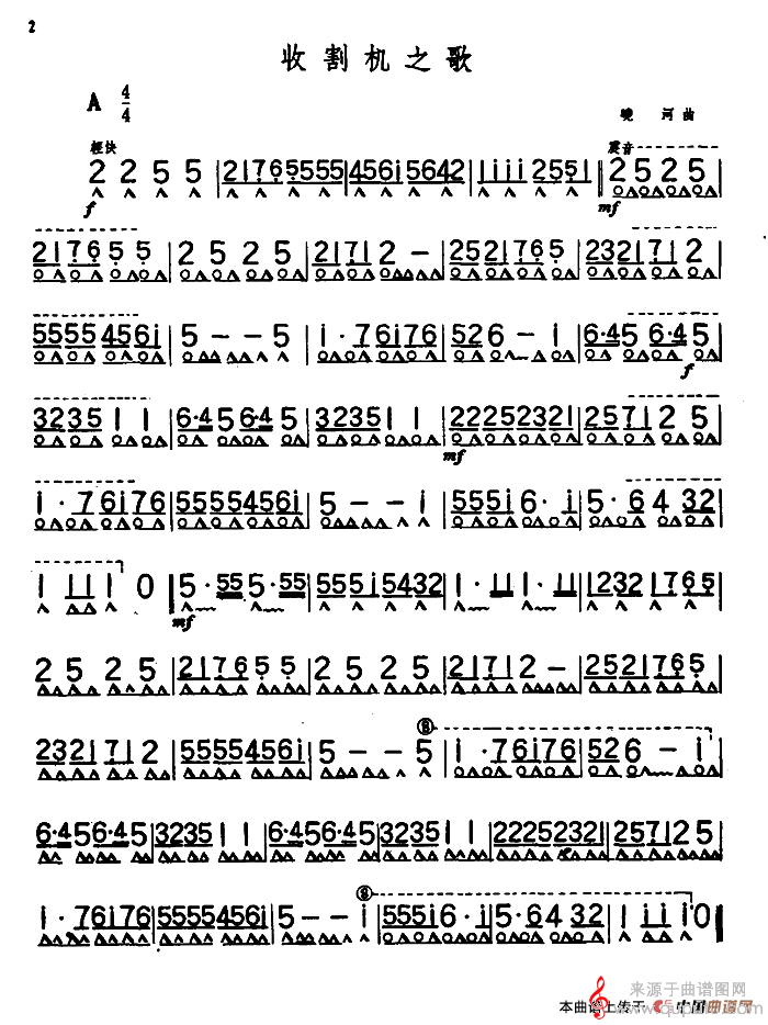 曲谱图网为您提供收割机之歌(口琴曲简谱)找谱子,就上曲谱图网。