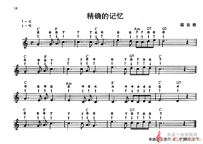 曲谱图网为您提供精确的记忆(口琴曲简谱)找谱子,就上曲谱图网。