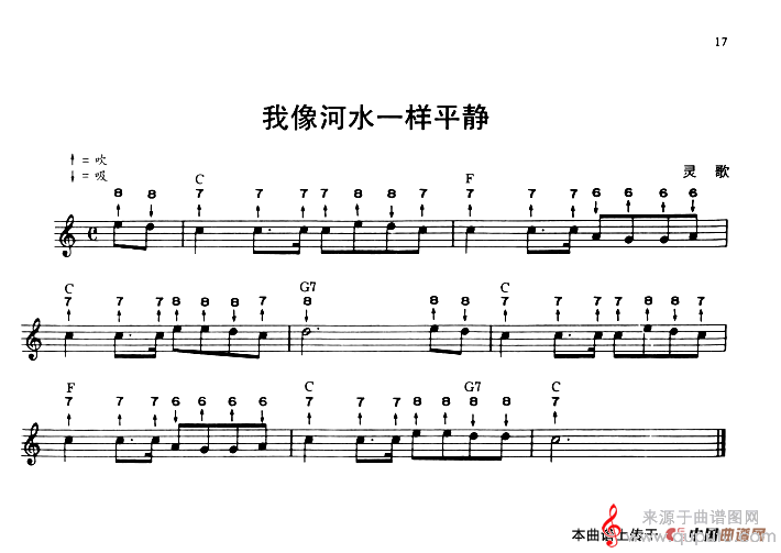 曲谱图网为您提供我像河水一样平静(口琴曲简谱)找谱子,就上曲谱图网。