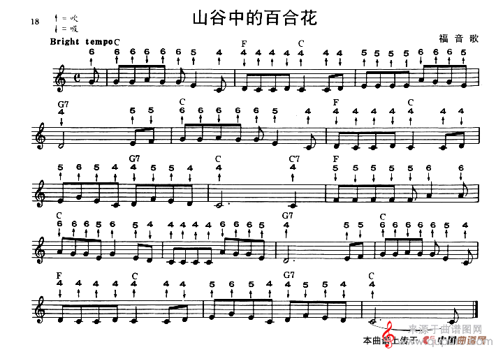 曲谱图网为您提供山谷中的百合花(口琴曲简谱)找谱子,就上曲谱图网。