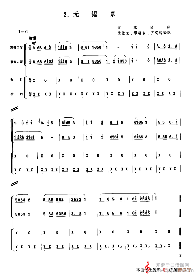 无锡景(口琴独奏合奏演奏乐谱)
