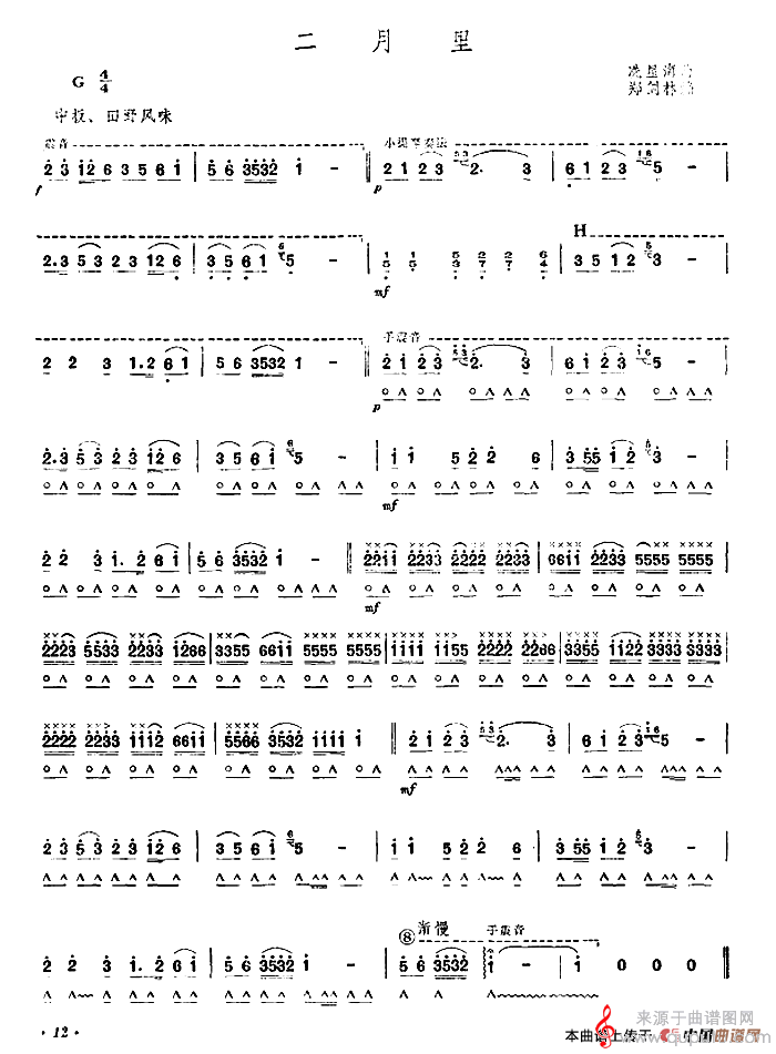 曲谱图网为您提供二月里(二月里口琴曲演奏简谱)找谱子,就上曲谱图网。