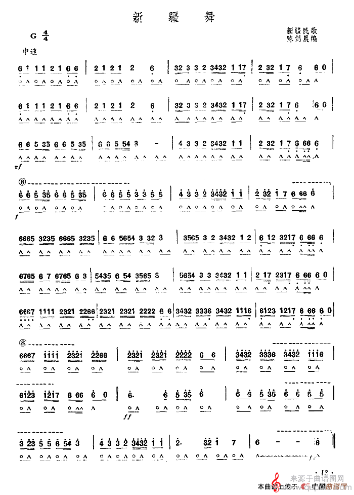 曲谱图网为您提供新疆舞(新疆舞口琴演奏简谱)找谱子,就上曲谱图网。