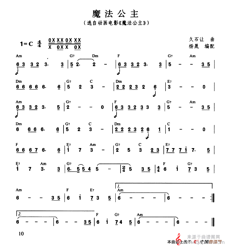 魔法公主(魔法公主口琴曲独奏简谱)