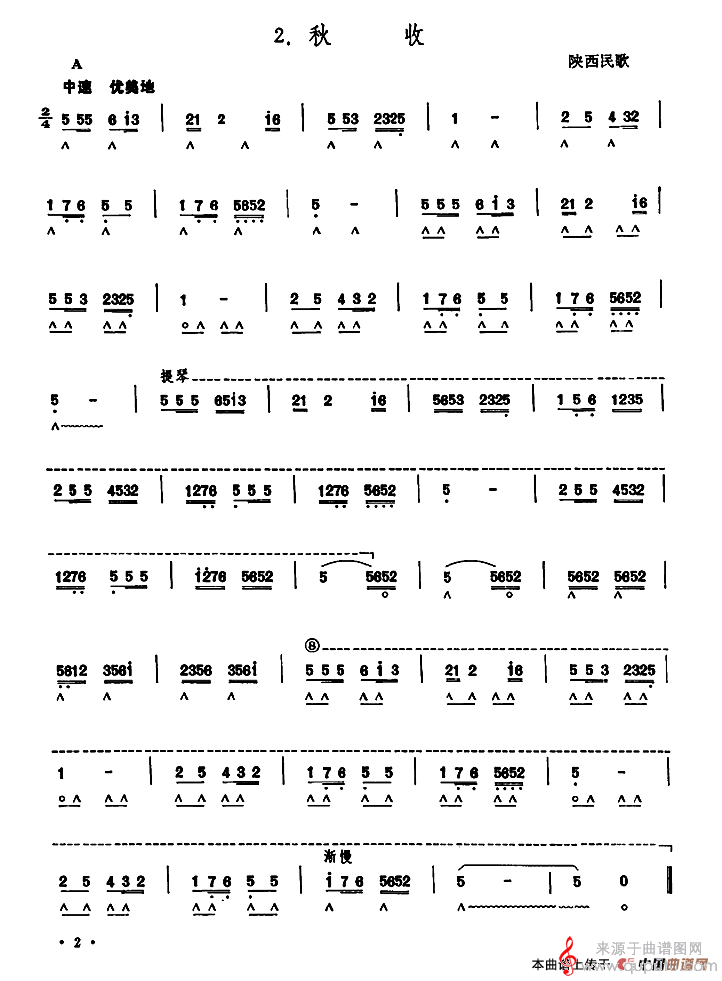 曲谱图网为您提供秋收(陕西民歌口琴曲独奏简谱)找谱子,就上曲谱图网。