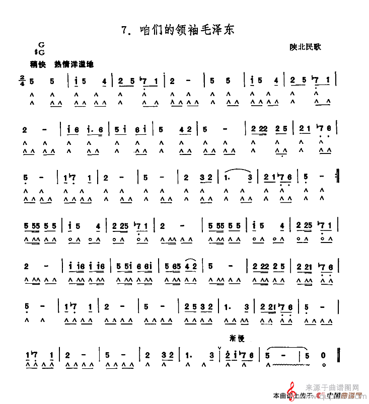 咱们的领袖毛泽东(陕北民歌口琴曲简谱)