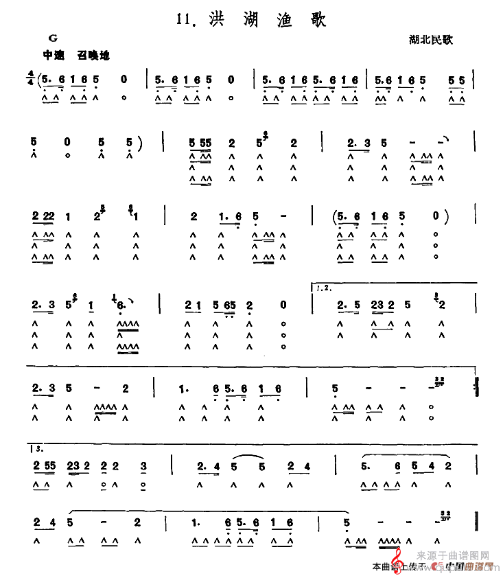 洪湖渔歌(湖北民歌洪湖渔歌口琴曲简谱)