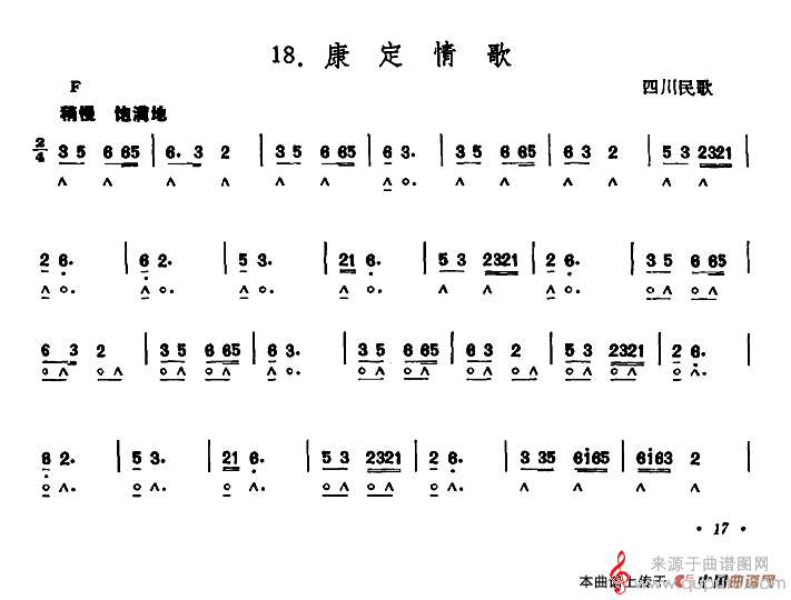 版本四:康定情歌(五线谱对照版)