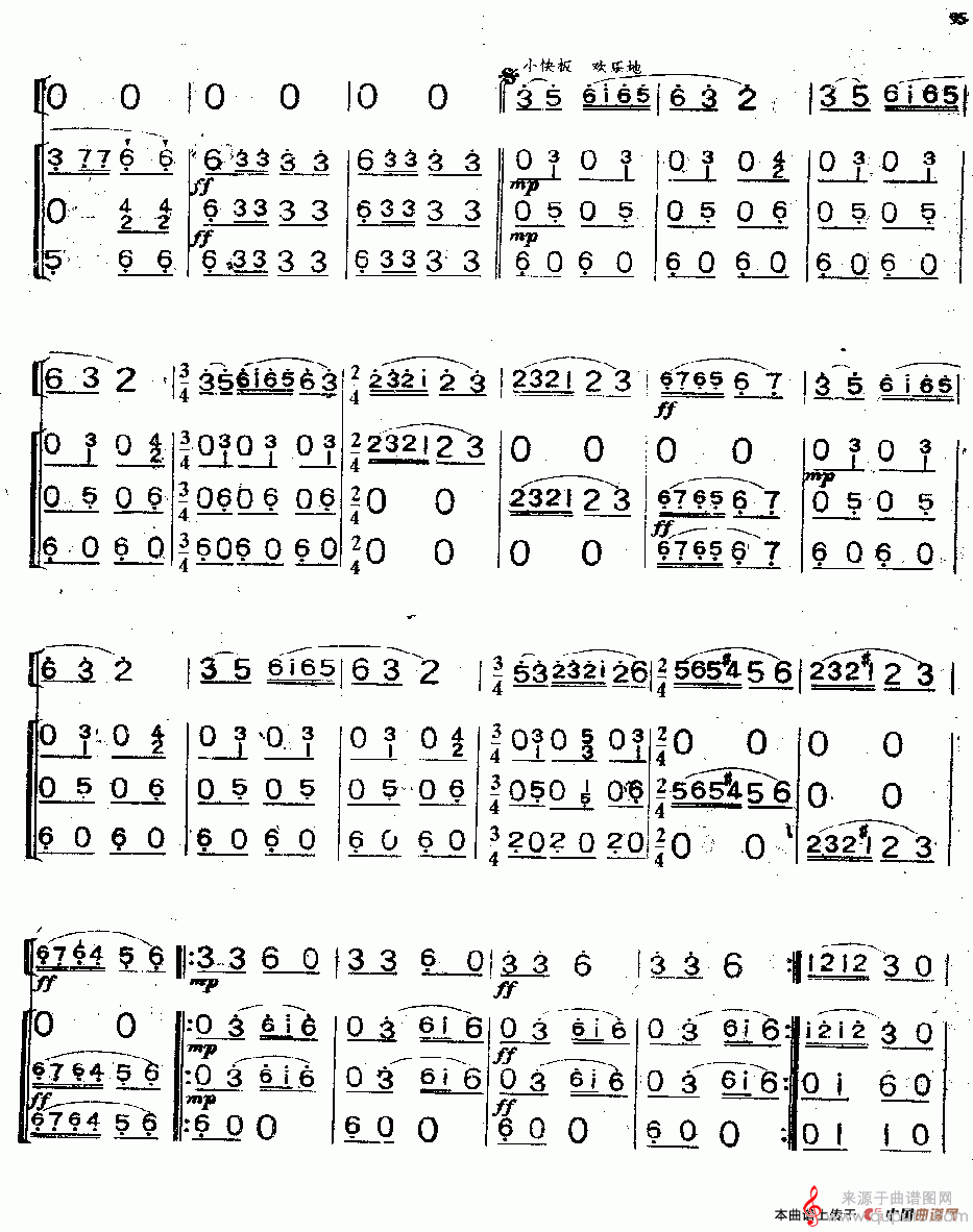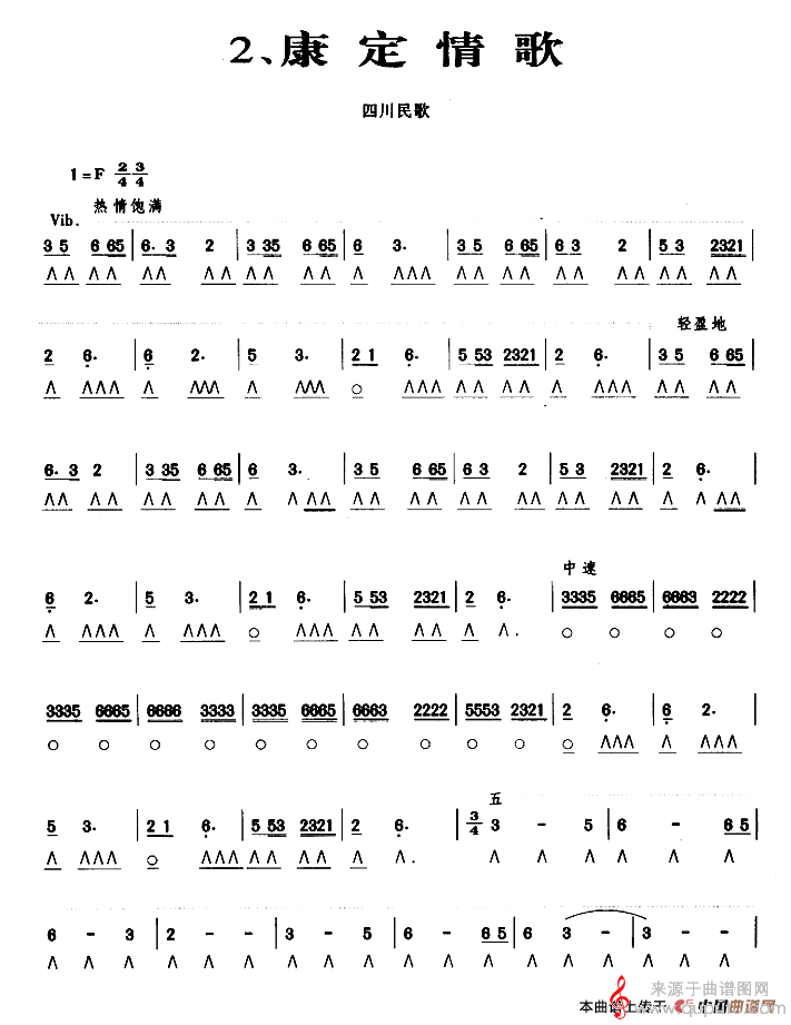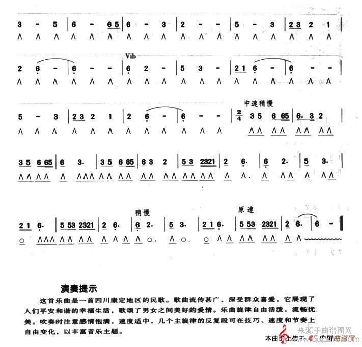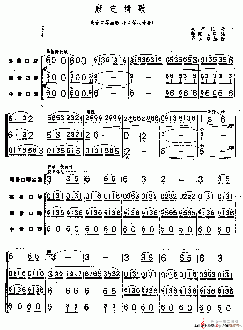 版本三:《康定情歌》(合奏总谱)高音口琴独奏 + 小口琴队伴奏