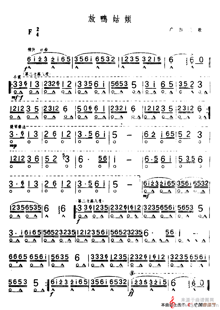 曲谱图网为您提供放鸭姑娘(口琴曲演奏简谱)找谱子,就上曲谱图网。