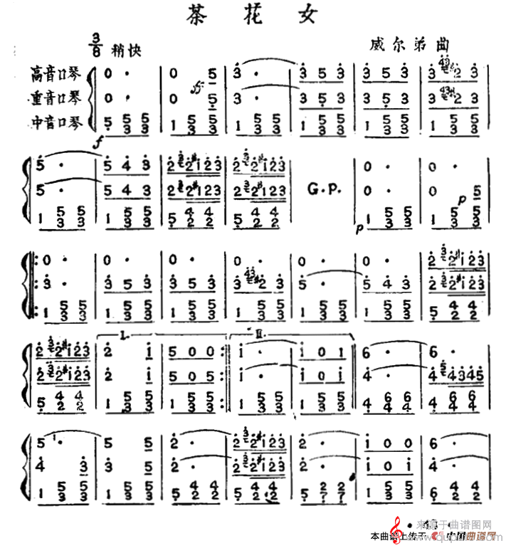 曲谱图网为您提供茶花女(歌剧《茶花女》口琴曲简谱拔萃曲+三重奏版)找谱子,就上曲谱图网。