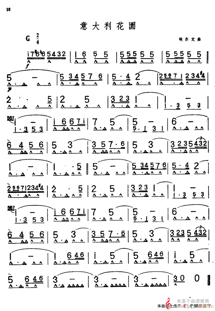 曲谱图网为您提供意大利花园(口琴曲独奏教学简谱)找谱子,就上曲谱图网。