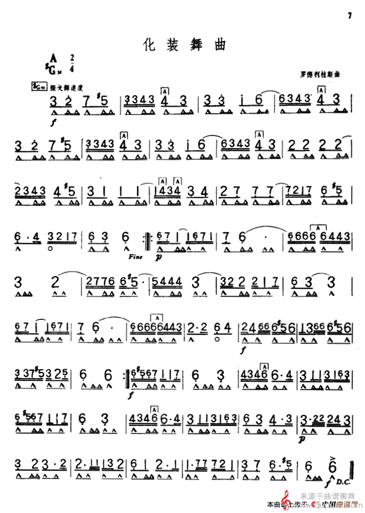 曲谱图网为您提供化装舞曲(口琴曲独奏演奏简谱)找谱子,就上曲谱图网。