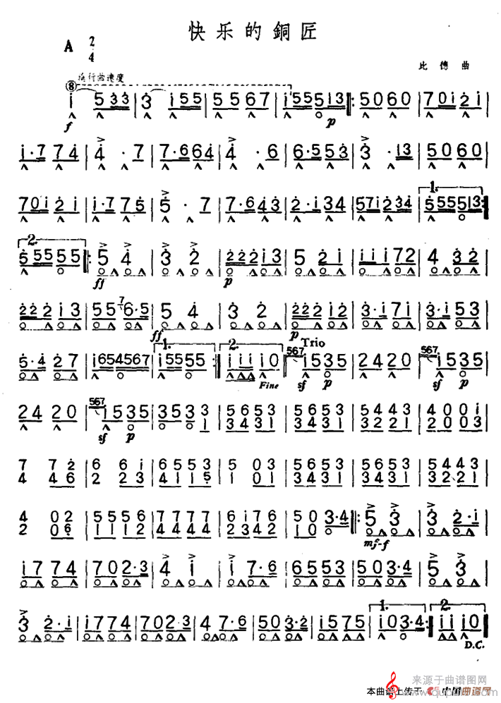 快乐的铜匠(口琴曲独奏简谱)