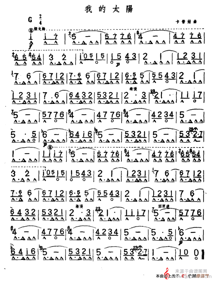 曲谱图网为您提供我的太阳(口琴曲简谱乐谱)找谱子,就上曲谱图网。