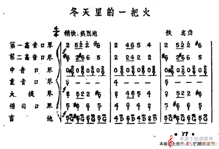 曲谱图网为您提供冬天里的一把火(口琴曲弦乐合奏简谱)找谱子,就上曲谱图网。