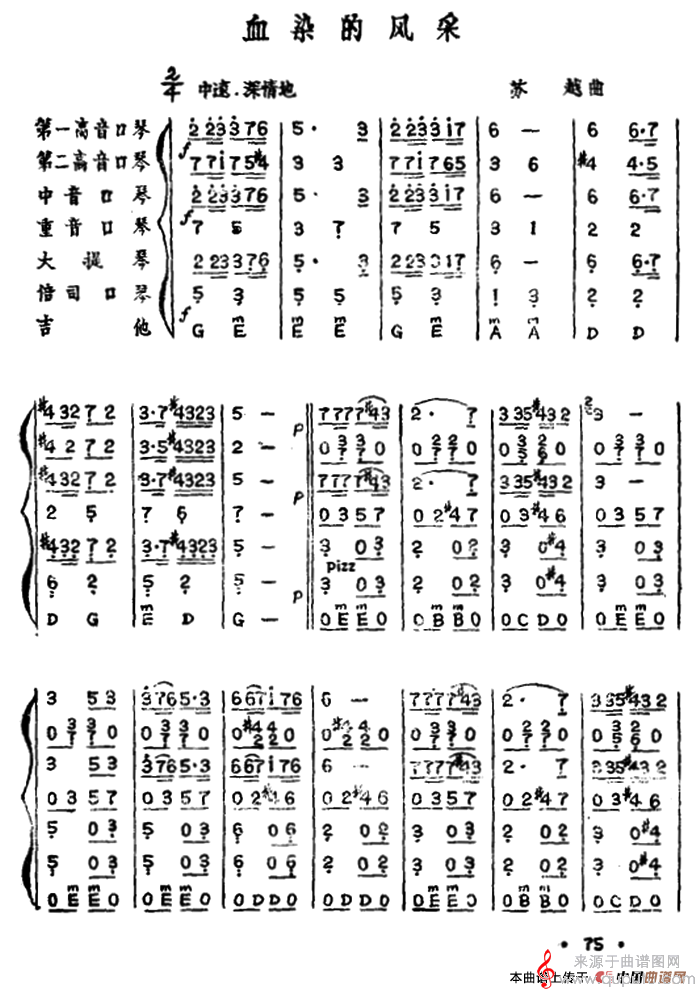 曲谱图网为您提供血染的风采(口琴曲弦乐合奏乐谱)找谱子,就上曲谱图网。