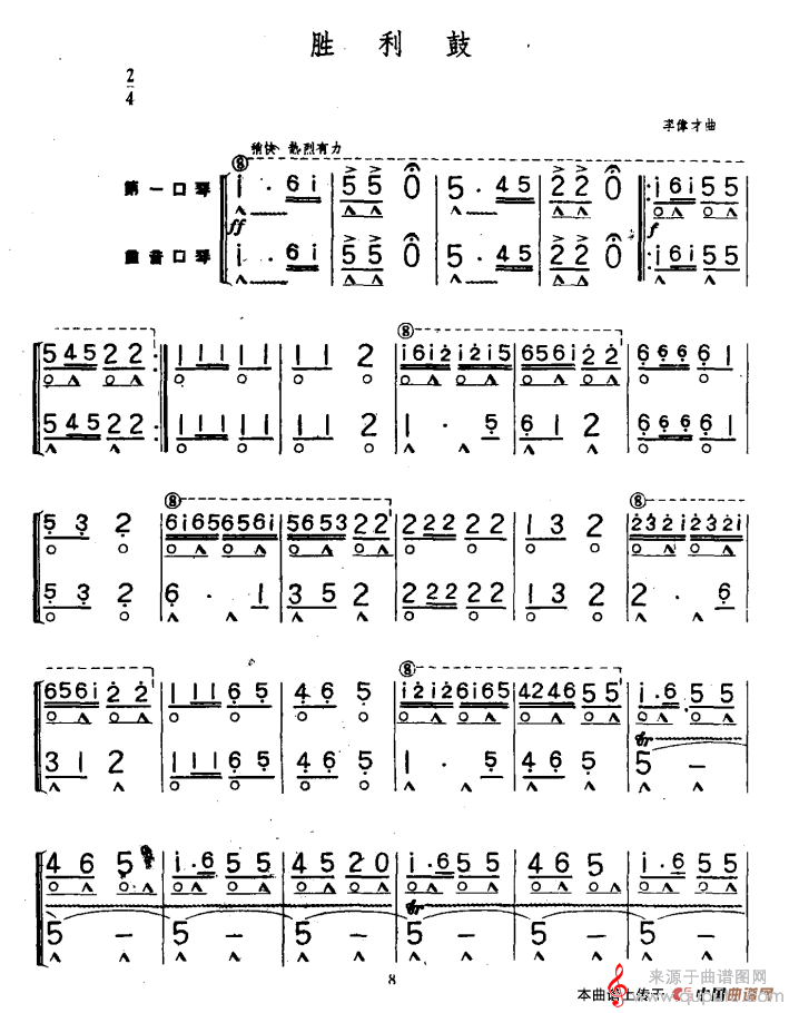 曲谱图网为您提供胜利鼓(口琴曲二重奏简谱)找谱子,就上曲谱图网。
