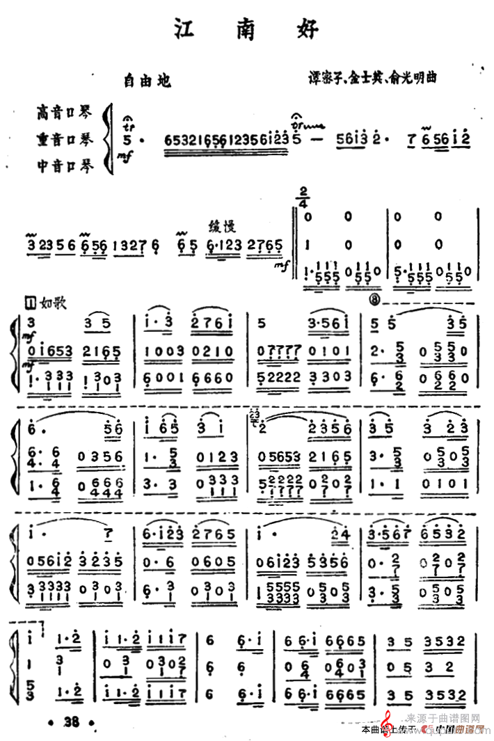 曲谱图网为您提供江南好(口琴曲演奏简谱三重奏)找谱子,就上曲谱图网。