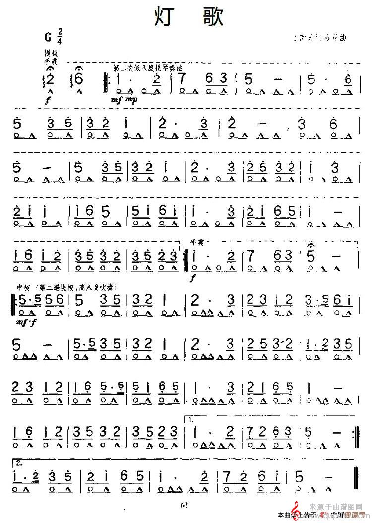 曲谱图网为您提供灯歌(灯歌口琴曲独奏演奏简谱)找谱子,就上曲谱图网。