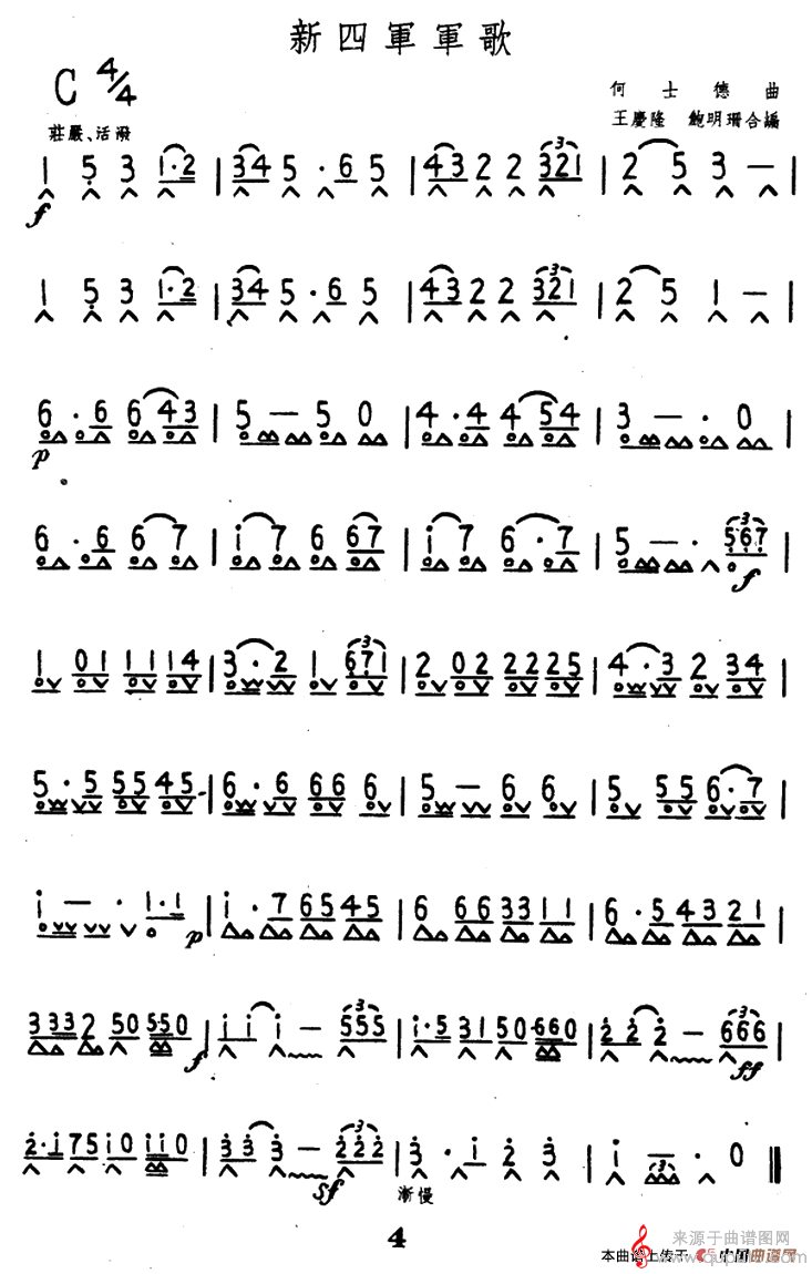曲谱图网为您提供新四军军歌(新四军军歌口琴曲简谱)找谱子,就上曲谱图网。