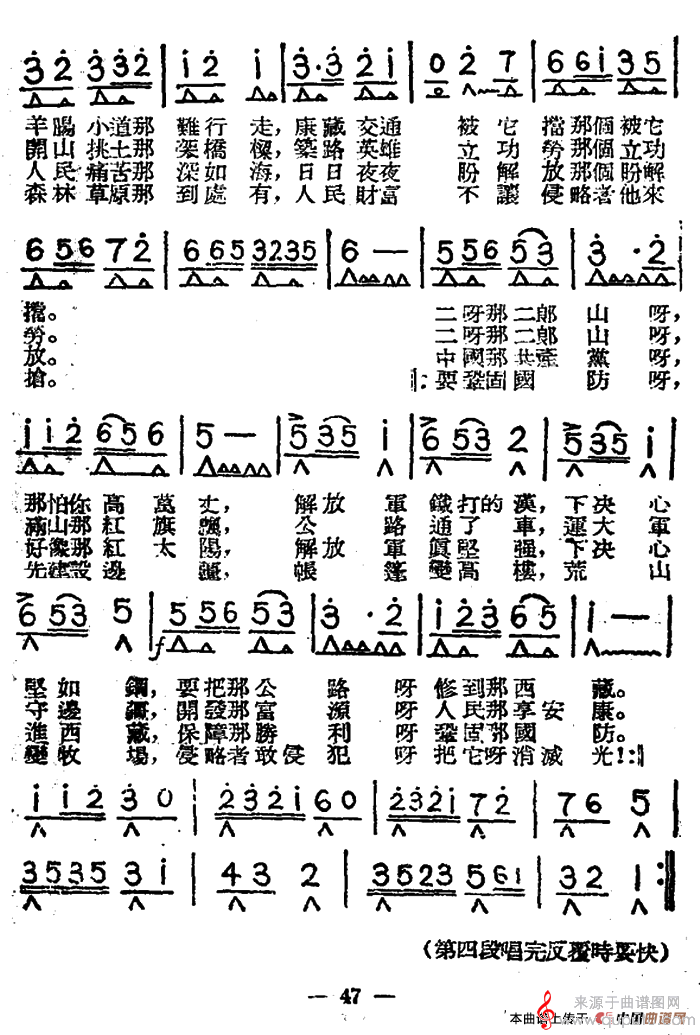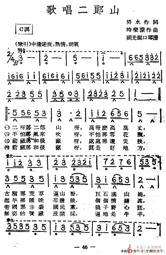曲谱图网为您提供歌唱二郎山(口琴曲独奏简谱)找谱子,就上曲谱图网。
