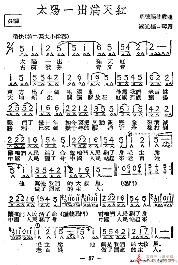 曲谱图网为您提供太阳一出满天红(口琴曲独奏吹奏演奏简谱)找谱子,就上曲谱图网。