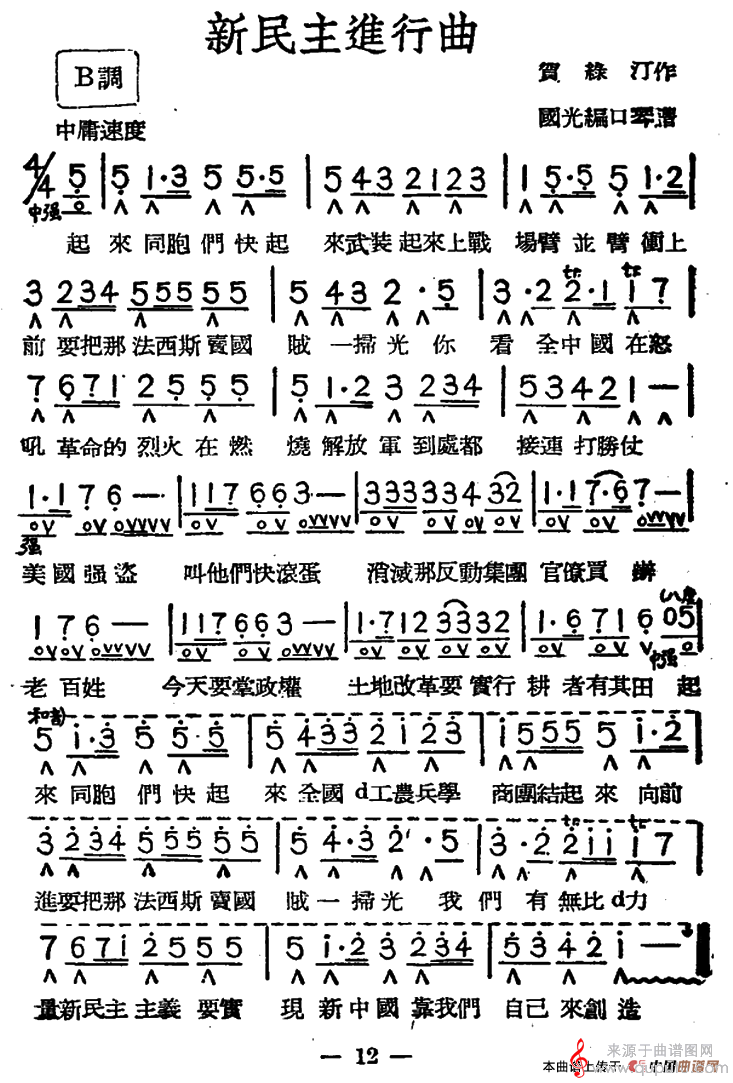 曲谱图网为您提供新民主进行曲(口琴曲独奏简谱)找谱子,就上曲谱图网。