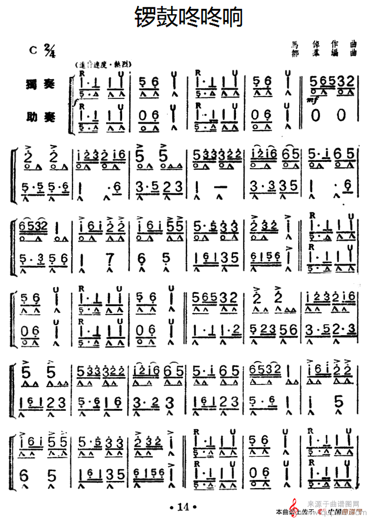 曲谱图网为您提供锣鼓咚咚响(口琴曲独奏重奏简谱)找谱子,就上曲谱图网。