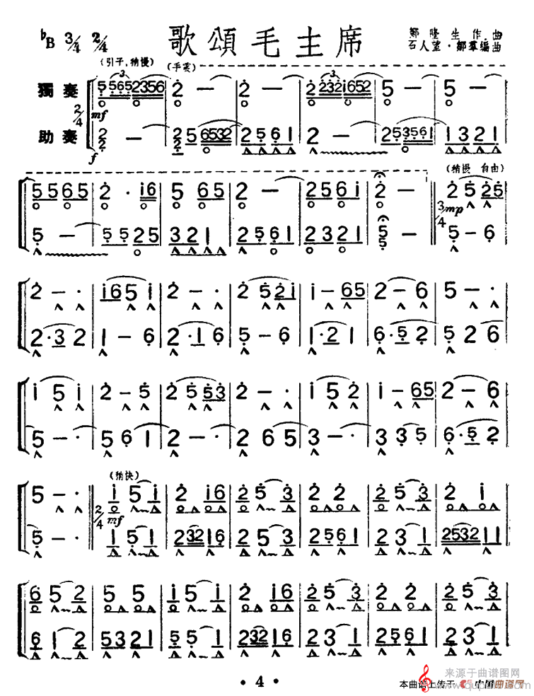 曲谱图网为您提供歌颂毛主席(口琴曲重奏独奏简谱)找谱子,就上曲谱图网。