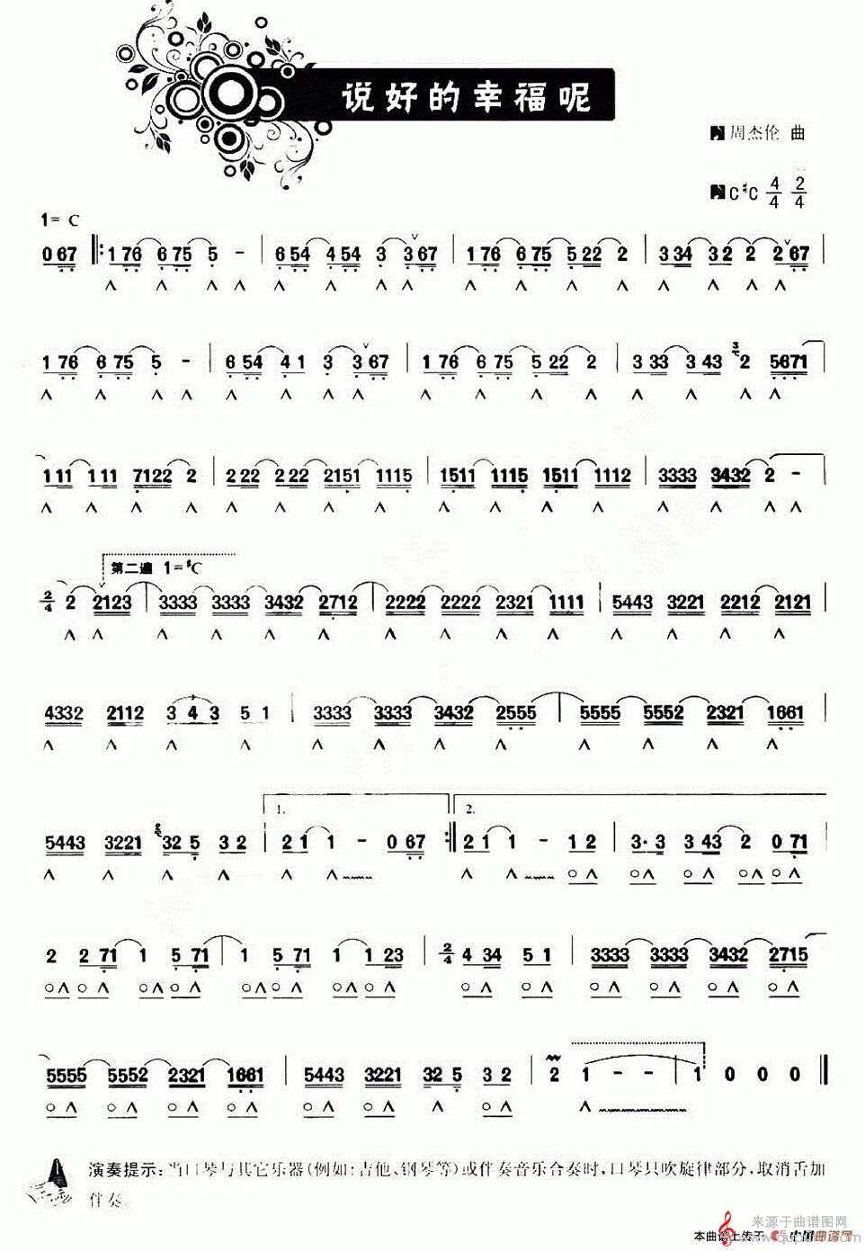 曲谱图网为您提供说好的幸福呢(口琴曲简谱)找谱子,就上曲谱图网。