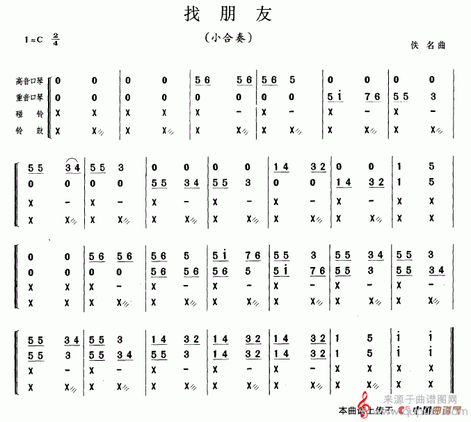 曲谱图网为您提供找朋友(找朋友口琴曲合奏简谱)找谱子,就上曲谱图网。