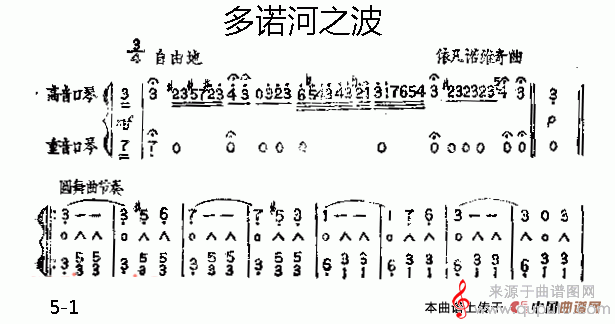 曲谱图网为您提供多诺河之波(口琴曲二重奏简谱)找谱子,就上曲谱图网。