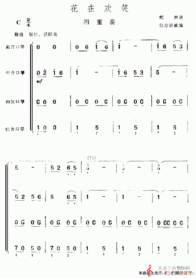 花在欢笑(口琴曲四重奏独奏简谱)