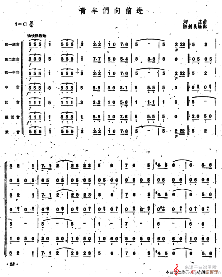 曲谱图网为您提供青年们向前进(口琴曲合奏演奏简谱)找谱子,就上曲谱图网。