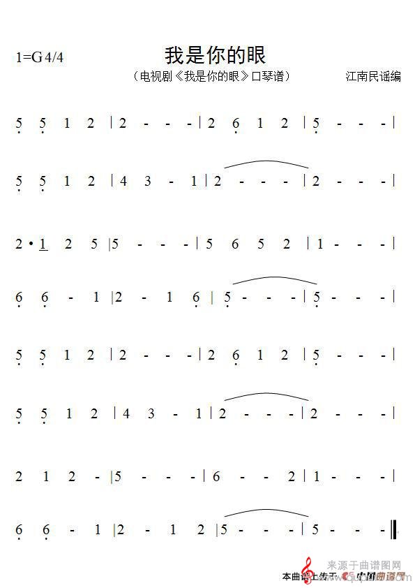 曲谱图网为您提供我是你的眼(口琴曲演奏简谱)找谱子,就上曲谱图网。
