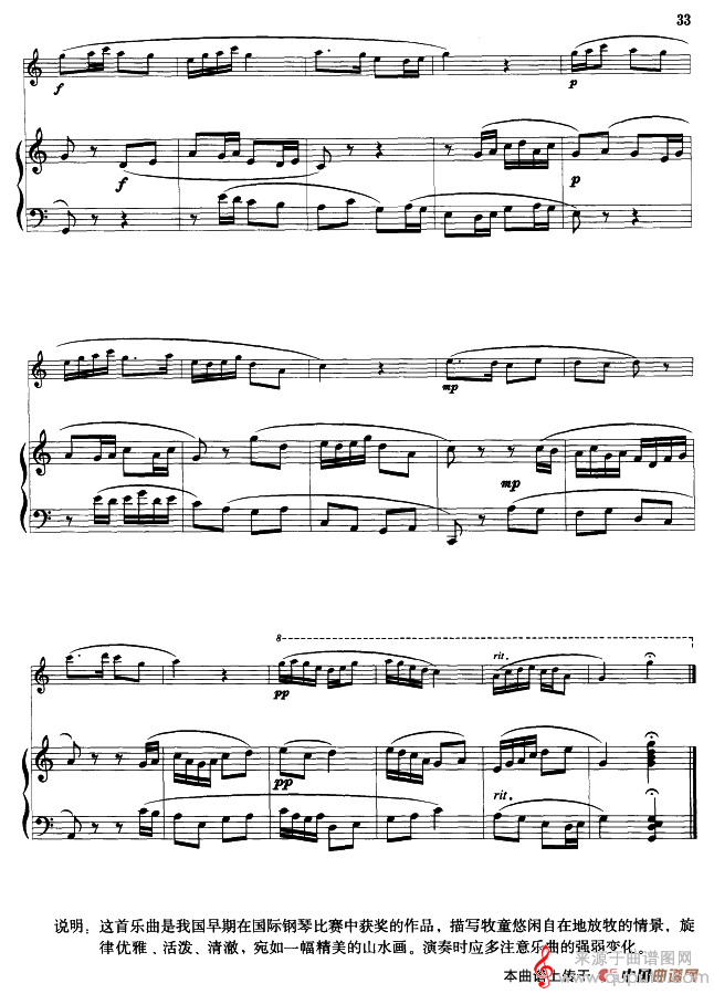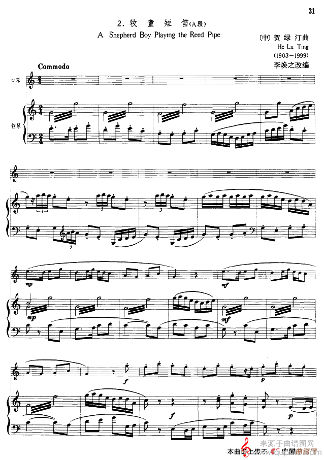 曲谱图网为您提供牧童短笛(A段)(口琴+钢琴伴奏合奏简谱)找谱子,就上曲谱图网。
