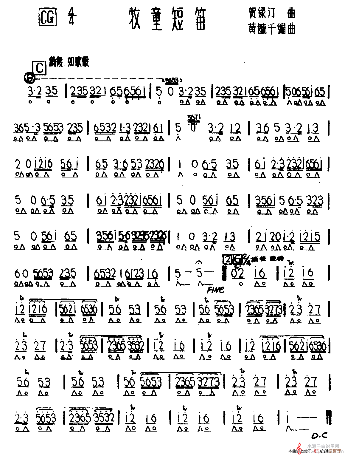 牧童短笛(A段)(口琴+钢琴伴奏合奏简谱)
