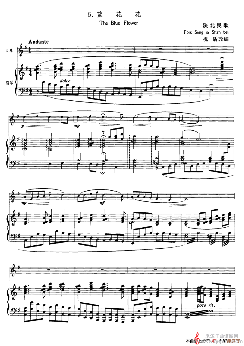 曲谱图网为您提供蓝花花(口琴曲独奏+钢琴伴奏)找谱子,就上曲谱图网。