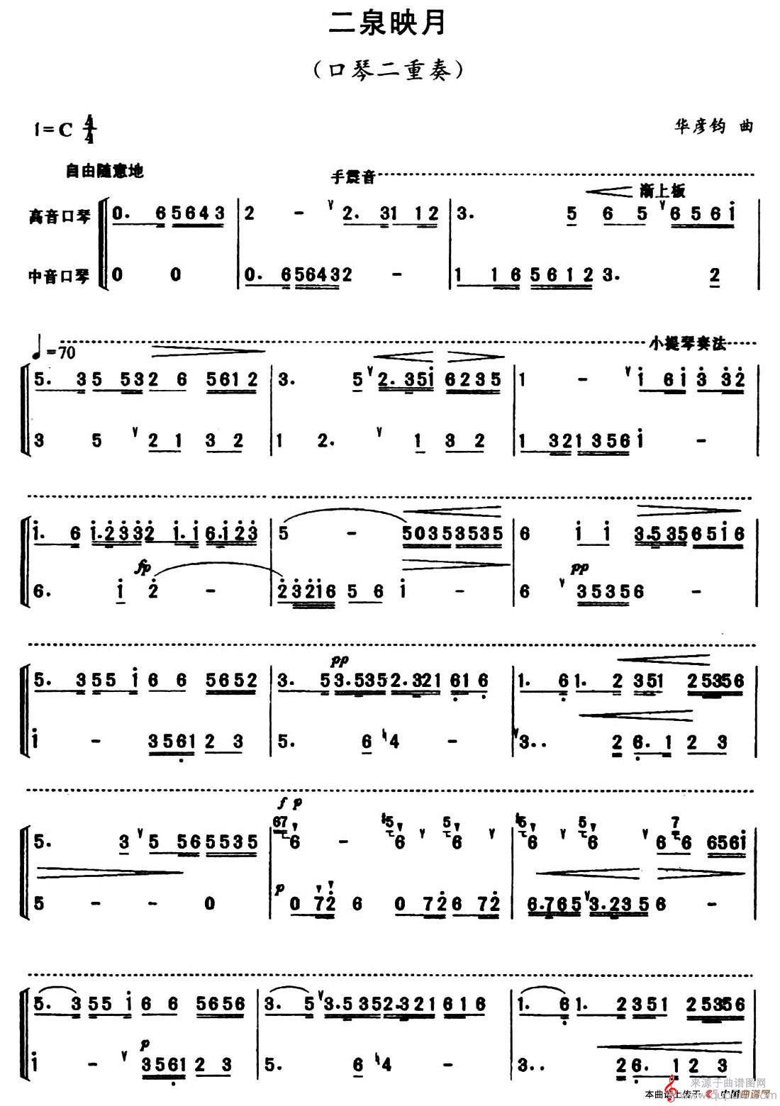 曲谱图网为您提供二泉映月(口琴曲二重奏简谱)找谱子,就上曲谱图网。